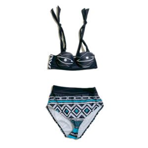 Women’s beach swimsuit two-piece set with diamond pattern