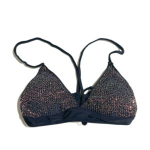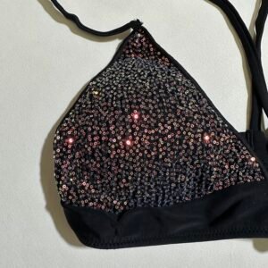 Women’s Summer Swimsuit Beach Swimsuit Two-Piece Style Pure Black with Sequins and Gold Sequins