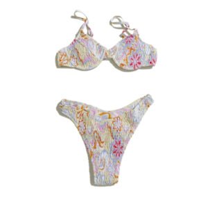 Women’s Summer Swimsuit Beach Swimsuit Beige with Floral Pattern Two-Piece Swimsuit