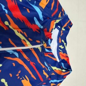 Women’s Summer Swimsuit with Zipper, Beach Swimsuit, Blue-Black Long-Sleeved Two-Piece Set