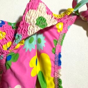 Women’s Summer Pink Floral Swimsuit Fashionable Two-Piece Swimsuit Set