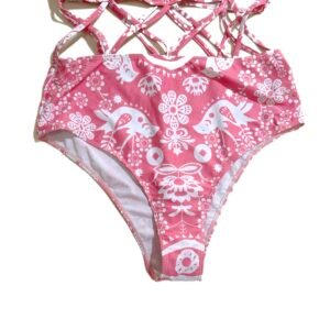Women’s two-piece beach swimsuit, pink floral pattern bikini