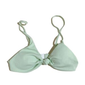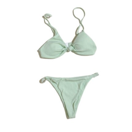 Summer beach women’s swimsuit, light green solid color two-piece swimsuit set.