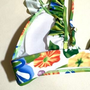 Rainbow pattern ruffled two-piece swimsuit with push-up and padded bustier top