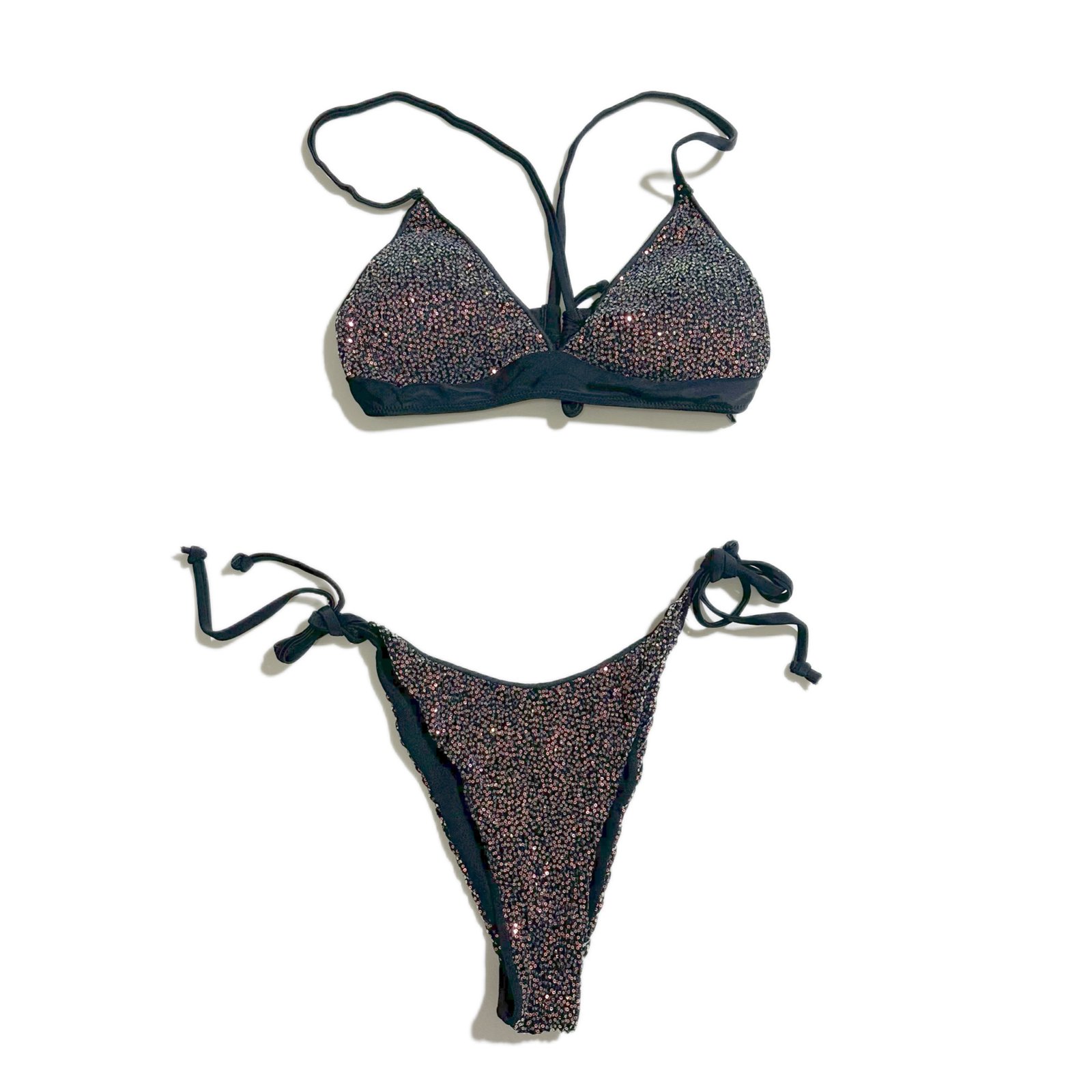 Women’s Summer Swimsuit Beach Swimsuit Two-Piece Style Pure Black with Sequins and Gold Sequins