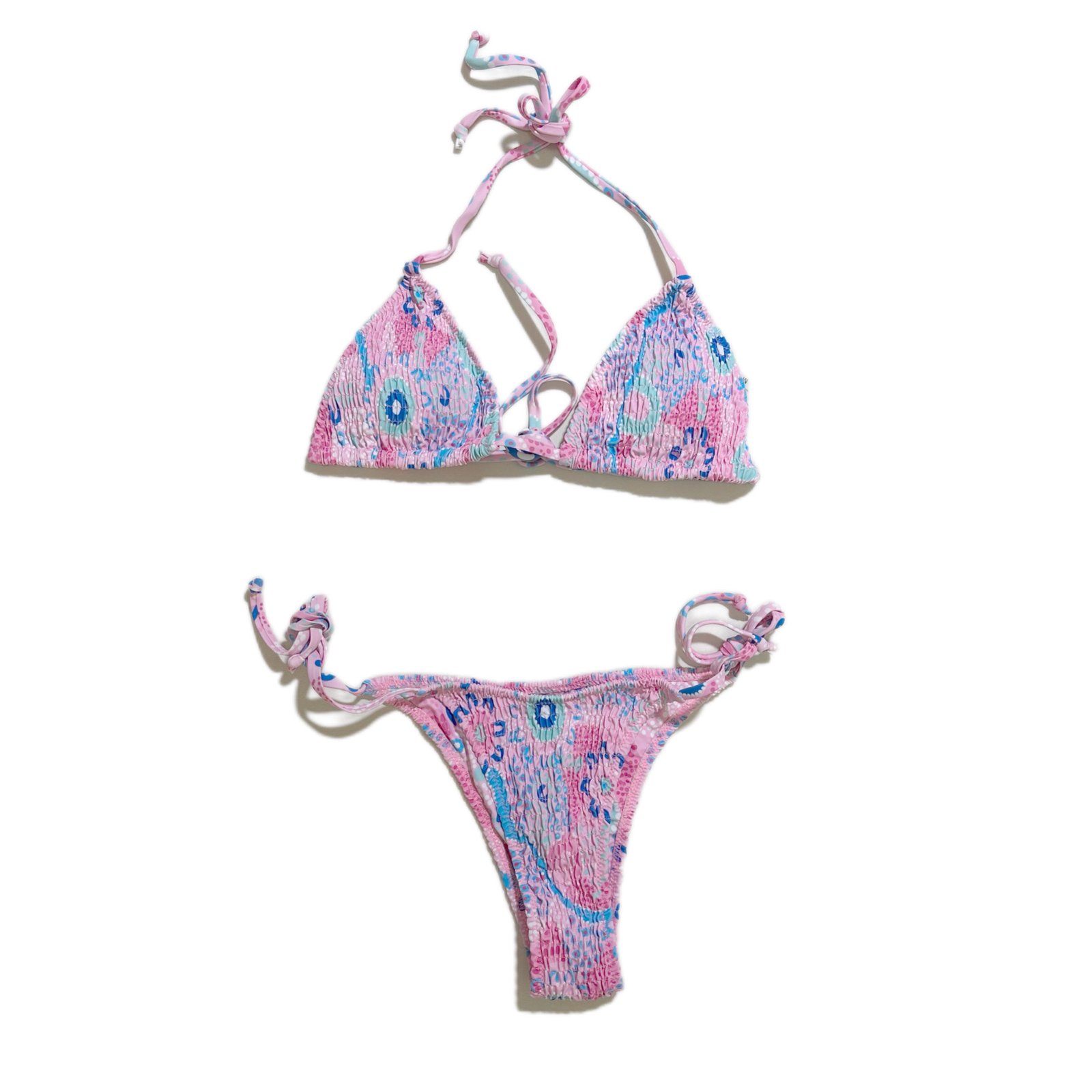 Women’s two-piece beach swimsuit, pink floral pattern bikini