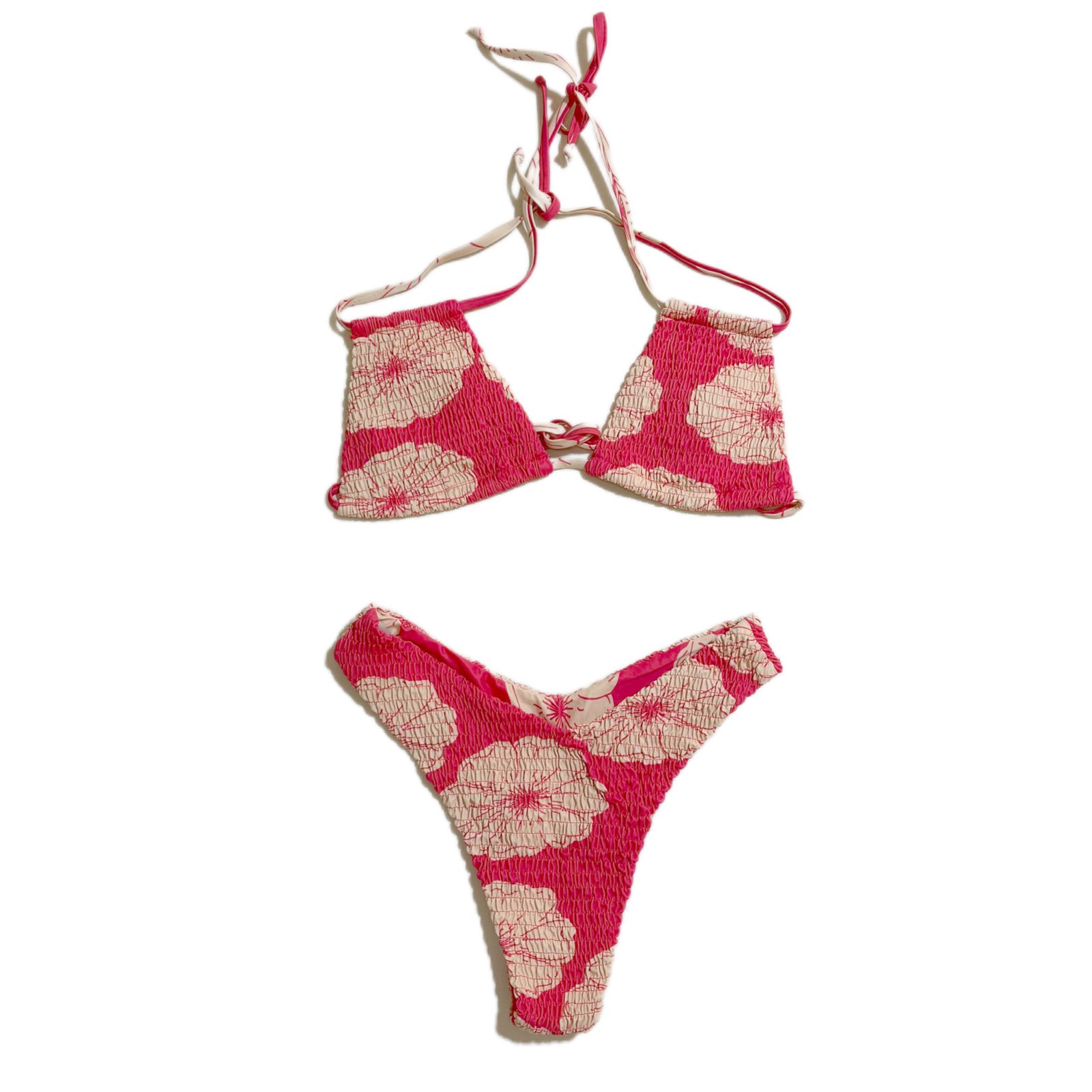 Women’s two-piece swimsuit, all-over floral print bikini set.